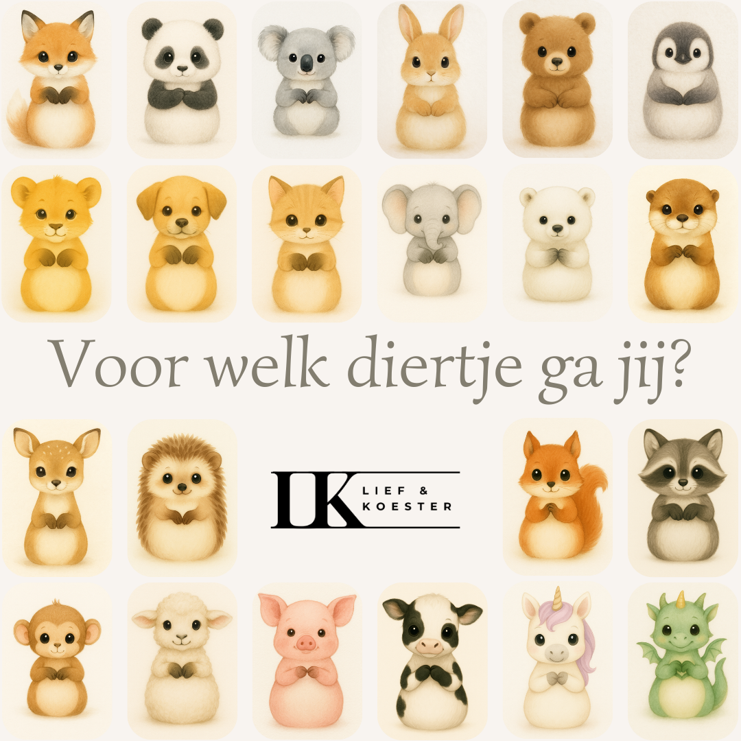 Maak de geboorteposter helemaal eigen door te kiezen uit maar liefst 22 verschillende diertjes. Van lieve bosdieren tot zachte fantasiewezens, er is altijd een illustratie die perfect past bij jullie stijl of het thema van de babykamer.